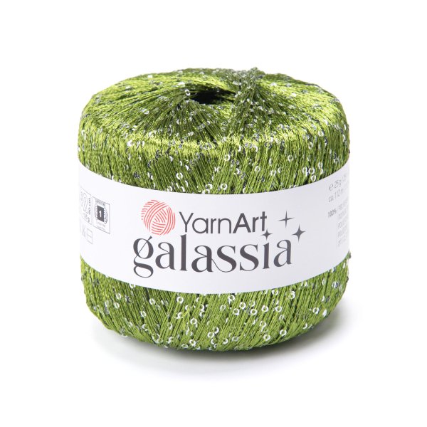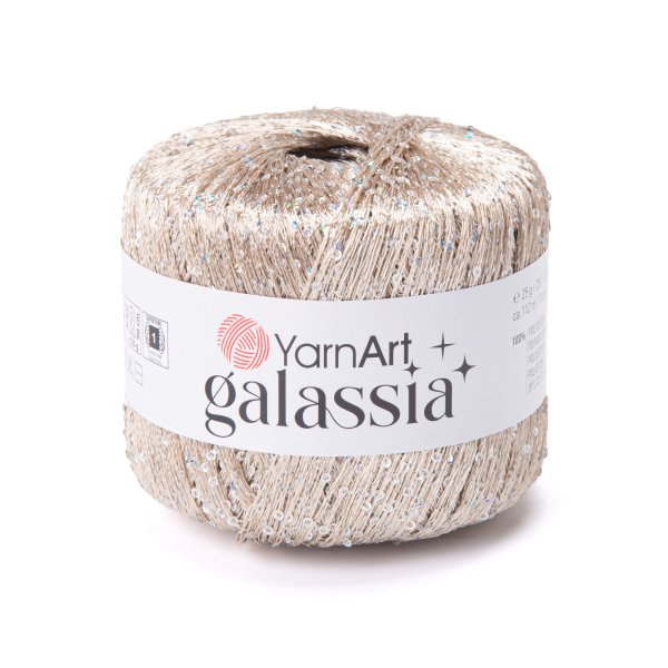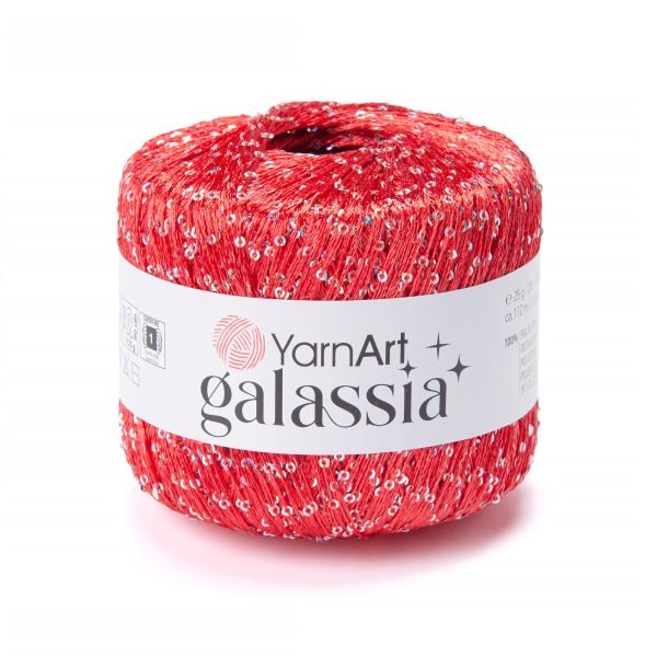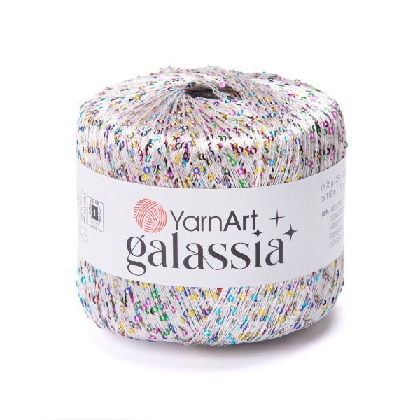 Příze YarnArt Galassia je specifický typ tenké polyesterové příze, která se vyznačuje jemným leskem a především všitými flitry (sequins). Je ideální pro tvorbu elegantních večerních doplňků, šátků nebo jako připlétací nit pro dodání slavnostního vzhledu jiným projektům.